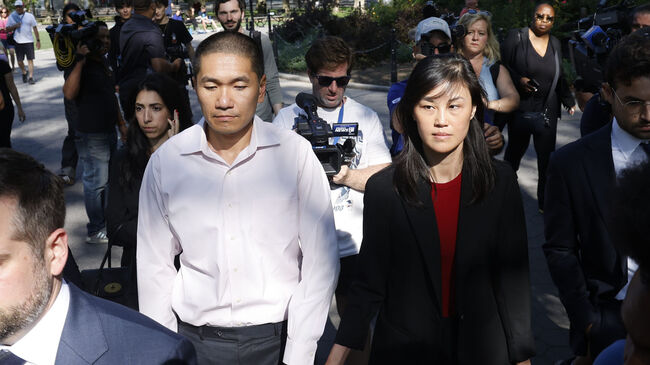 린다 쑨과 그녀의 남편. 중국의 스파이 활동 댓가로 향응과 금품, 페라리 차량 등을 제공받은 혐의로 체포되었다. (사진: 연합뉴스TV 유튜브 갈무리)