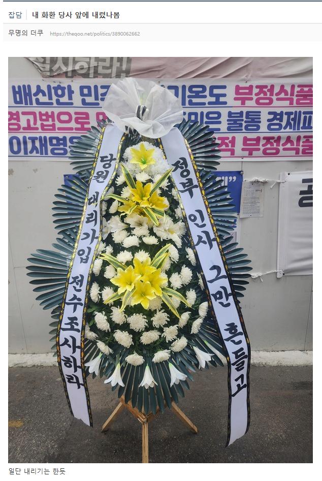 [단독] 민주당 당대표 선거의 여진, 근조화환
