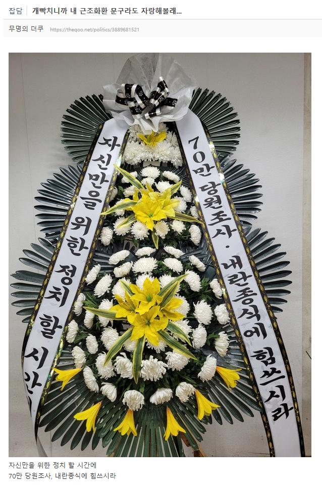 자신만을 위한 정치 할 시간에 70만 당원조사, 내란종식에 힘쓰시라 (커뮤니티 '더쿠' 캡쳐)