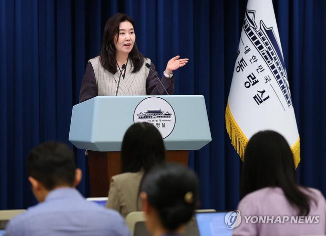 대통령실의 강유정 대변인이 기자 질문에 답변하고 있다. (사진: 연합뉴스)