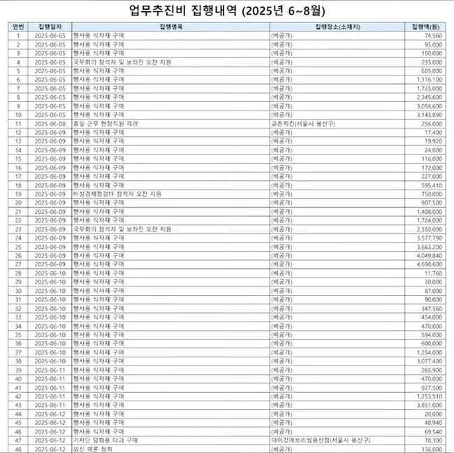 • ‘역대 최초 공개’라는 특활비 내역, 영수증은 없고, 사용장소도 대부분 비공개