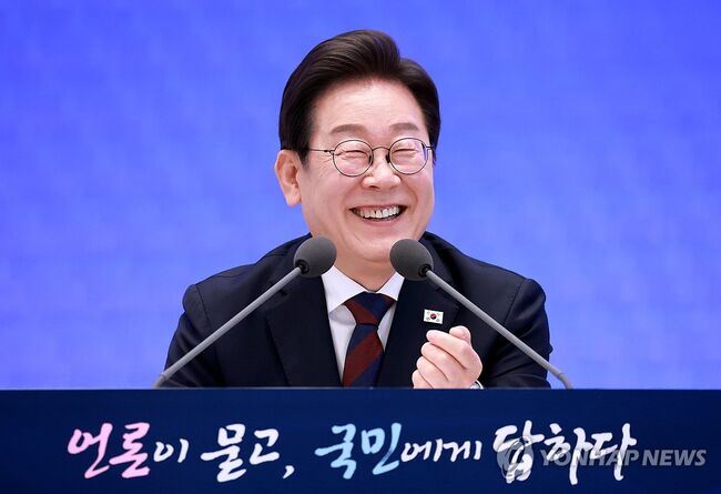 이재명 대통령이 활짝 미소를 짓고 있다 (사진=연합뉴스)