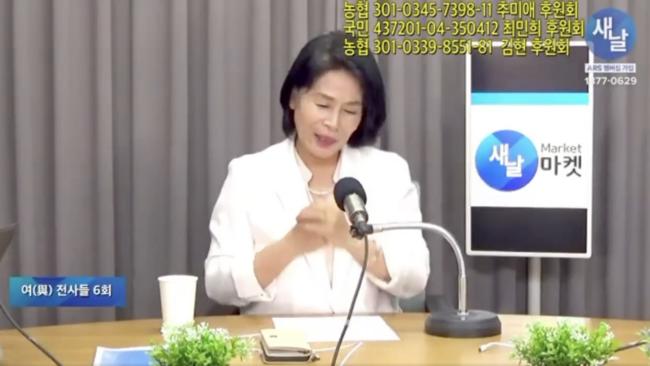 딸 결혼식 46일 전인 9월 2일 유튜브에 출연해 결혼식 떄 입을 한복에 대해 언급하는 최민희 의원 (유튜브 새날 화면 갈무리)