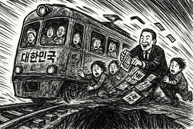 이 모든 참담한 미래는 운명이 아니라, 2025년의 우리가 만든 선택이다. 특히 국가의 재정을 책임진 대통령의 인식은 이 비극을 더욱 가속화하고 있다. 역대급 세수 펑크로 나라 곳간이 비어가는데도, 그는 국채 추가 발행을 통한 현금 살포를 너무나 쉽게 말한다. 국가부채를 "미래를 위해 씨앗을 심는 일"이라 칭했던 그 위험한 궤변은 조금도 변하지 않았다.