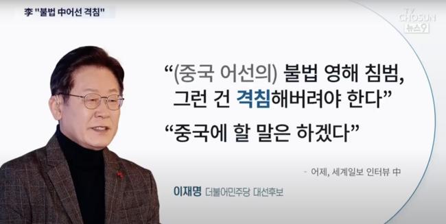 2022년 대선후보 당시 '격침' 발언을 했던 이재명 대통령 (TV조선뉴스 갈무리)