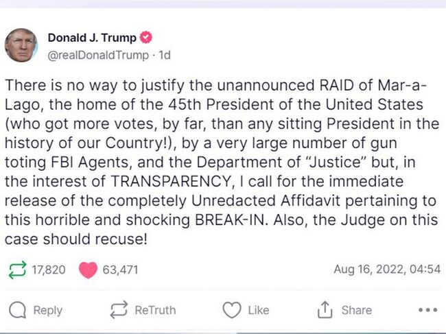 대문자가 난무하는 트럼프의 트루스소셜 포스팅