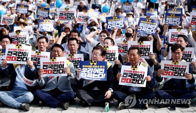 2023년 6월 17일 일본 후쿠시마 오염수 방류 규탄대회를 개최한 더불어민주당 (사진=연합뉴스)