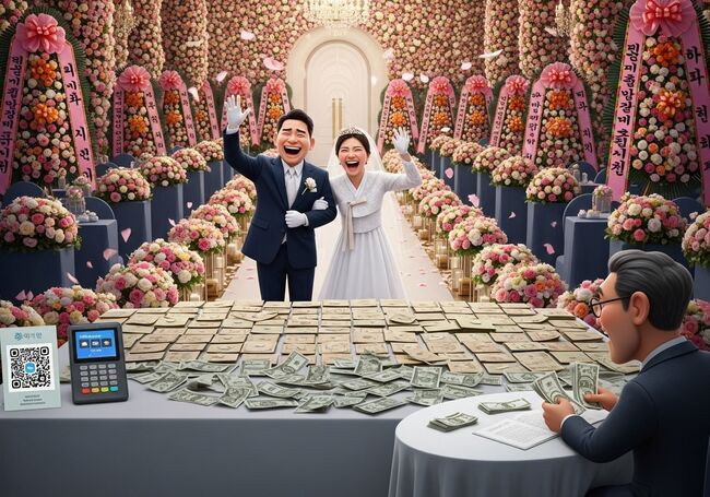 화환도 축의금도, 카드결제도 마다 않는 고위공직자 모씨 자녀의 결혼식(AI 상상도) (이미지: 가피우스)