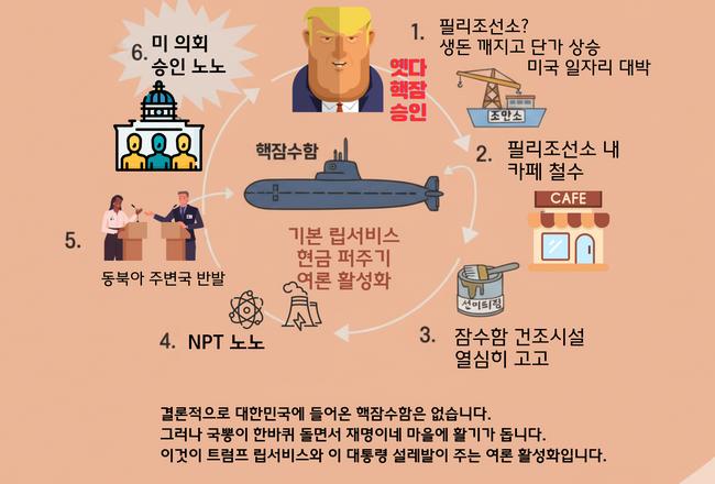 결론적으로, 트럼프의 '핵잠 승인'은 한국의 안보를 강화하는 게 아니라 미국의 경제적·전략적 이익을 우선시한 거래다. 정부의 성급한 낙관론은 국민을 기만하는 행위이며, NPT 개정과 주변국 설득이라는 험난한 길이 남아 있다.