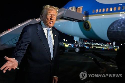 전용기 앞에서 기자들의 질문에 답하는 트럼프 미국 대통령. (사진: 연합뉴스)