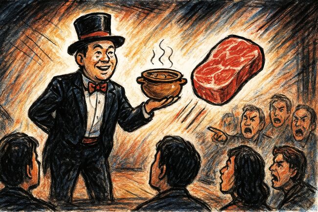 그가 보여준 된장찌개 쇼는 땅에 발을 붙이려는 경건한 의식이 아니었다. 관객의 눈을 잠시 속여 넘기려는 싸구려 마술 소품에 불과했다. 하지만 관객은 바보가 아니다. 마술사의 어설픈 손동작 뒤로, '고급 한우 식당'이라는 진실의 배경이 훤히 드러나자 객석에서는 야유가 터져 나왔다. 진정으로 '짜친' 비극은 이 트릭이 들통난 뒤에 시작된다. 그는 자신의 서툰 손재주를 탓하는 대신, 마술의 원리를 알아챈 관객의 눈이 '꼬였다'고 비난한다.