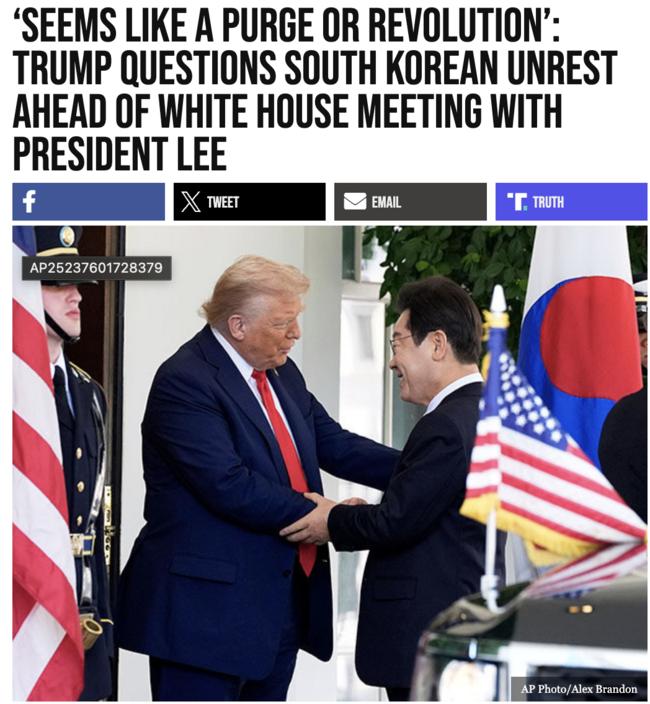 8월 26일 한미정상회담 이후 미국 내 트럼프 대통령 지지층이 온라인을 중심으로 환호하고 있다. 이들은 트럼프 대통령이 특유의 압박 전략으로 이재명 대통령의 굴복을 받아내고 미국의 실리를 완벽하게 챙긴 '외교적 승리'라고 평가했다.