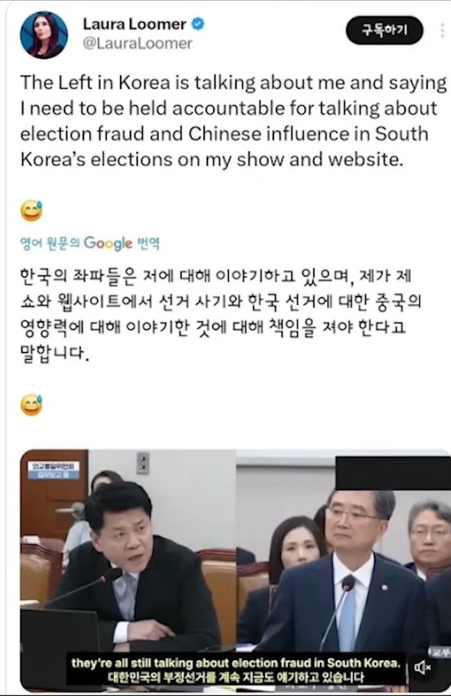 이미지 : 로라 루머의 x 게시물 그녀는 이어 극우인사를 입국금지 시키려면 트럼프도 해당되는 거 아니냐며 비아냥됐다.